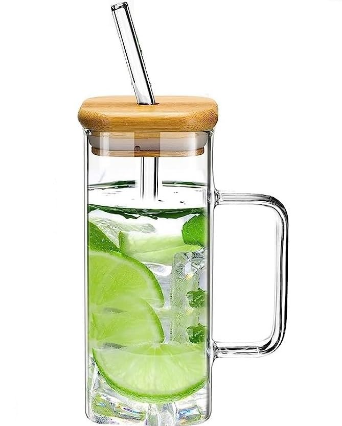 - Package Included: you will receive a set of 1 clear square glass with 1 bamboo lids, 1 glass straws , sufficient quantity is very suitable for family or party use
