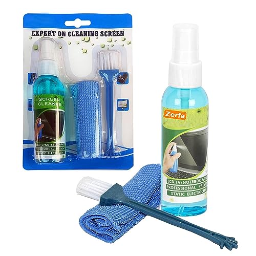 Zerfa - مجموعة تنظيف شاشة العرض 3 في 1 مع فرشاة قماش بخاخ، أداة تنظيف للاب توب والكمبيوتر والموبايلات وشاشة ال سي دي وليد من زدرفا، (بخاخ تنظيف الشاشة 3 في 1 مع أداة تنظيف فرشاة قماشية)