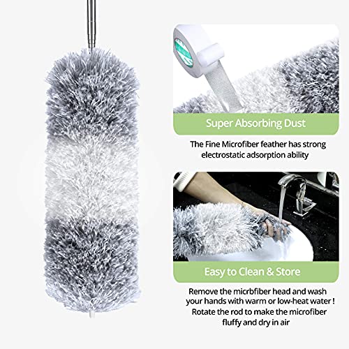 - ✅【قابلة للغسل والفصل】منفضة الغبار المصنوعة من المايكروفايبر الخاصة بنا سهلة الفك والغسل. ما عليك سوى إزالة رأس منفضة الغبار من العمود، وغسلها بالماء الدافئ، ثم تعليقها في مكان جيد التهوية لجعلها منفوشة للاستخدام التالي. كما صُممت قاعدة قضيب التمديد بفتحة تعليق لسهولة التخزين.