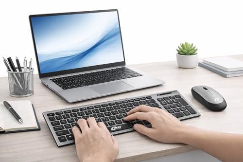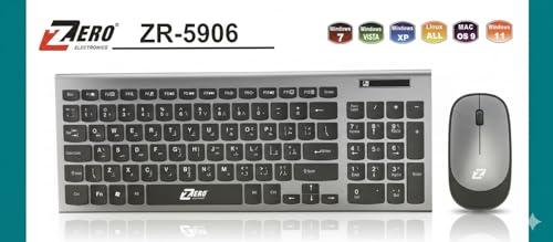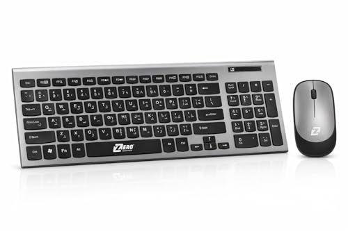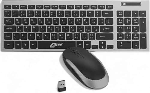 Generic - ZERo ZR-5906 Battery Operated Wireless Keyboard and Mouse – Slim Arabic English Keyboard – Streamlined Mouse – Wireless Kit for PC & Laptop – Cordless Organizer Desk