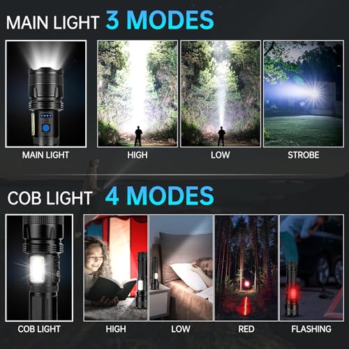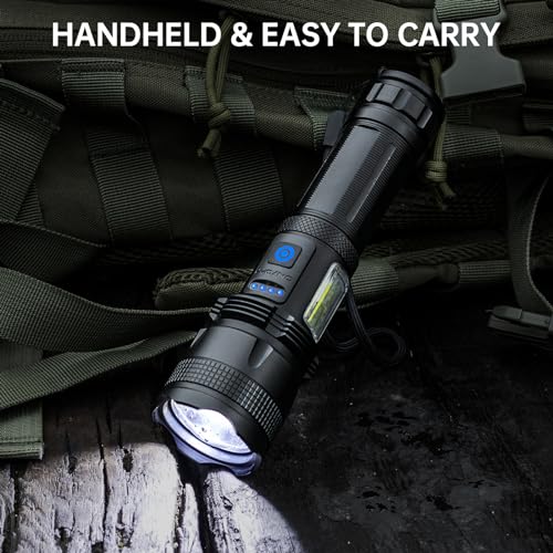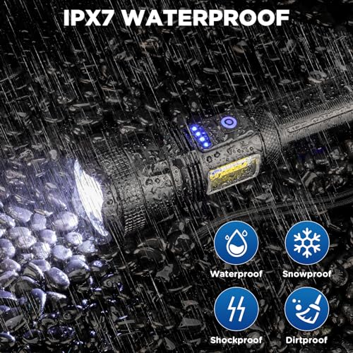 ZEUSFIRE - كشاف ليد يدوي قابل لإعادة الشحن فائق السطوع بقوة 100000 لومن مع 7 أوضاع إضاءة، قابل للتكبير ومقاوم للماء اي بي اكس 7 للتخييم والمشي والأنشطة الخارجية من زيوس فاير