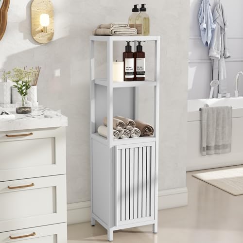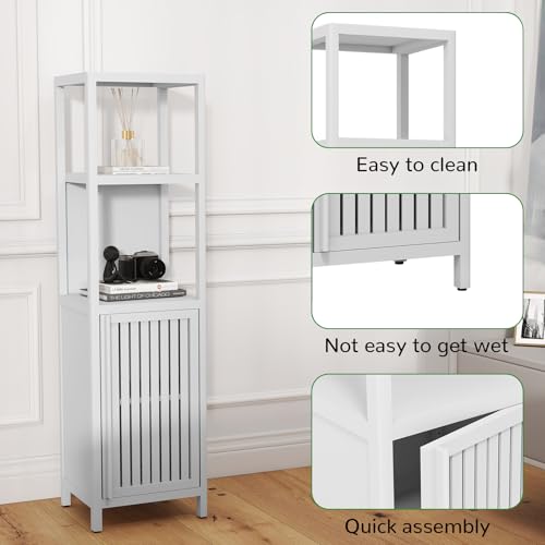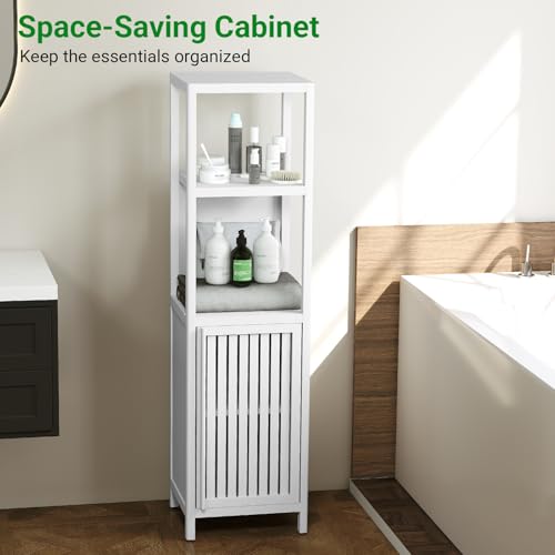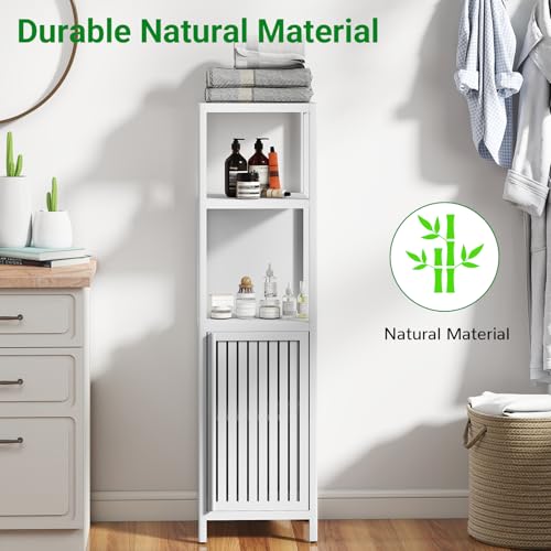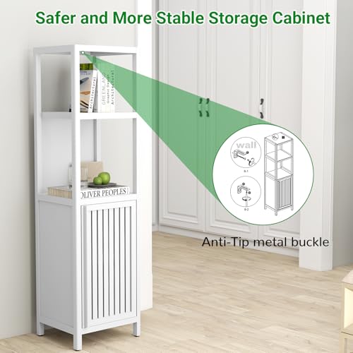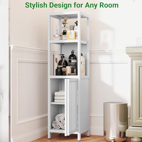 Zevemomo - 52" Tall Bathroom Cabinet, Storage Organizer with Shutter Door and 4 Tier Shelves, Freestanding Cabinets Narrow Storage Unit, Floor Cabinet for Bathroom, Living Room, Entryway, White