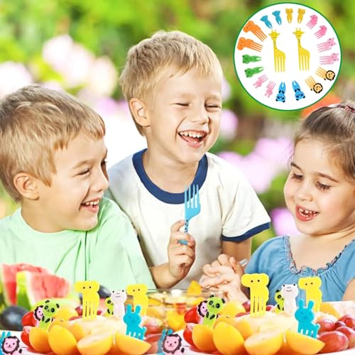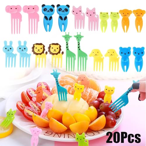 ZFLYXIAOHUA - Mini Fruit Forks Cartoon Shape, 20 Pieces Fruit Forks Children, Cute Animals Shape Toothpick Bento, for Dessert, Fruit, Pastries, Children's Party