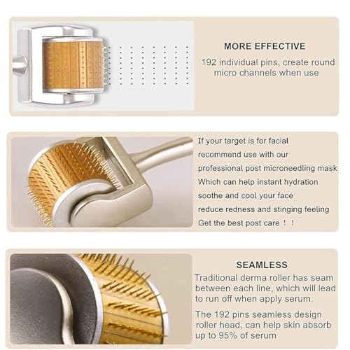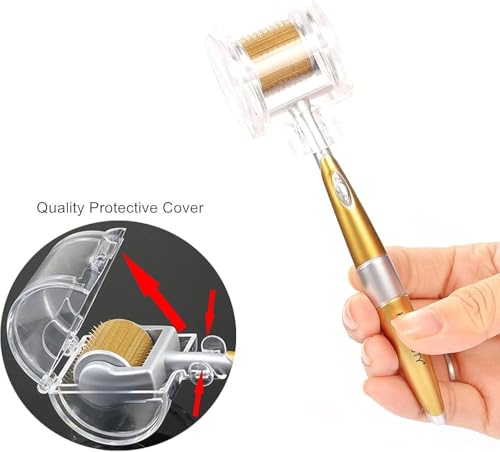 - PREMIUM DESIGN: Professional-grade derma roller featuring elegant gold and silver finish with ergonomic handle for precise control and comfortable grip during skincare treatments