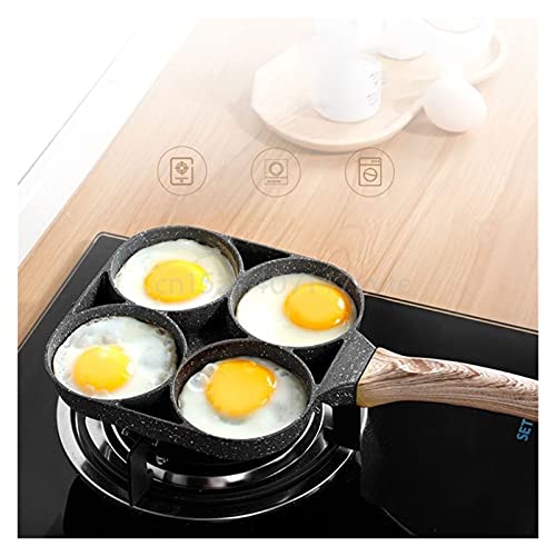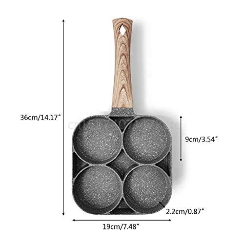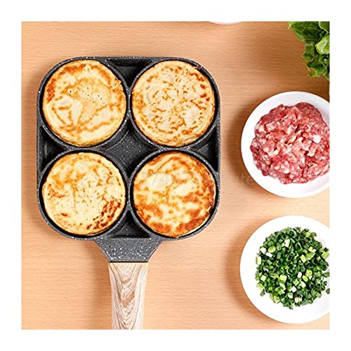 Generic - Zhangzhi 4 hole omelet pan fit for burger eggs ham pancake maker wooden handle frying pot non-stick cooking breakfast