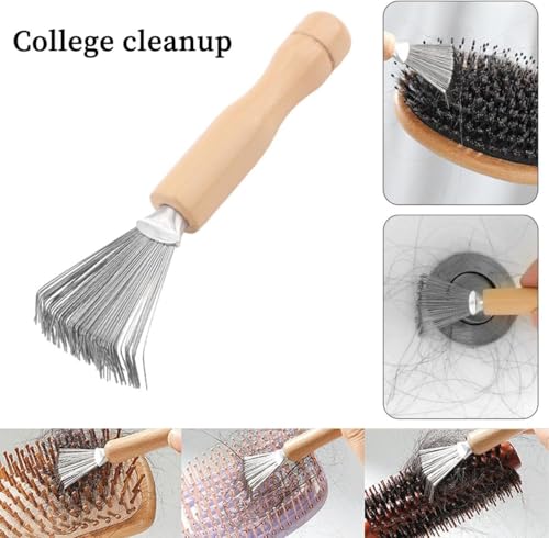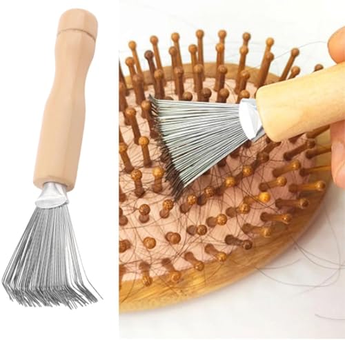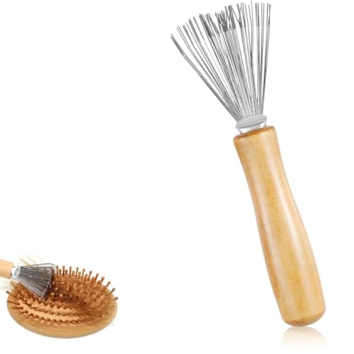 Zhenghebuy - Hair Brush Cleaner Tool,Comb Cleaning Rake,Comb Cleaner with Metal Wire,Brush Cleaner with Wooden Handle for Removing Hairs,Dirt,Lint,Salon