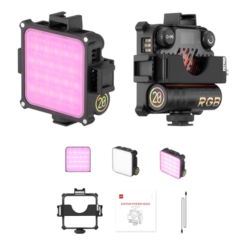 ZHIYUN - مصباح فيديو محمول M20C 20 واط RGB من زيون فيفراي، 4500 مللي أمبير قابل لإعادة الشحن بالألوان الكاملة للتصوير الفوتوغرافي TLCI 96+ CRI 94+ CCT 2500K-10000K مع 9 تأثيرات ضوئية، يدعم الجذب المغناطيسي