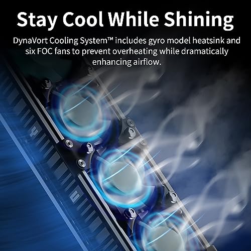 - ✅✅【Stay Cool While Shining】Based on cutting-edge fluid dynamics and dynamic algorithms, the DynaVort Cooling System in the light includes gyroscope-modeled heat sinks and six FOC fans, expertly designed to prevent overheating while substantially enhancing airflow emissions.