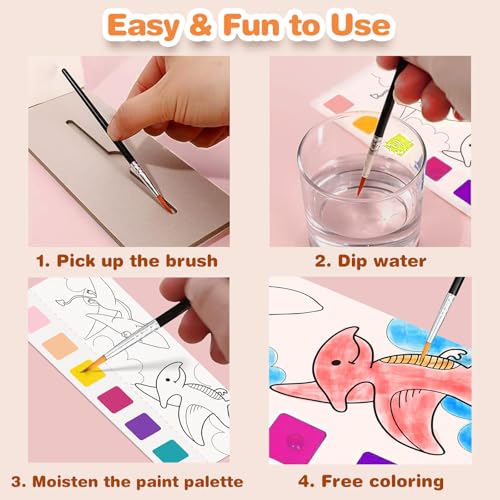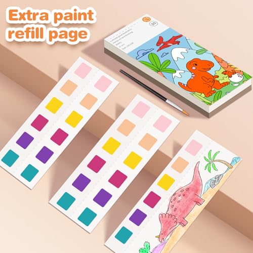 ZHOC - كتب تلوين بالألوان المائية للأطفال خالية من الفوضى بحجم الجيب للأطفال من سن 3 و4 و5 و6 و7 و8 فما فوق مناسبة لأنشطة الفنون والحرف اليدوية للأولاد والبنات من زوك (ديناصور)