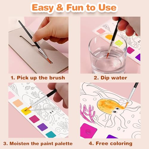 - Ideal Gift for Ages 4-12: This water coloring book is a great arts and crafts gifts for kids as birthday party gifts, class reward, Easter gifts, Christmas gifts, etc. Dive into a world of color and creativity—get your pocket watercolor book today