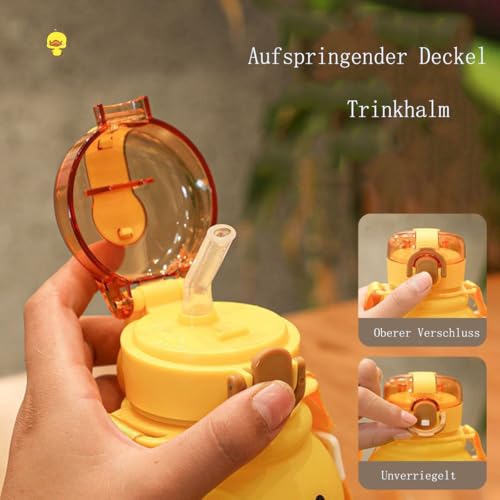- 【زجاجة مياه بتصميم بطة صفراء لطيفة】: زجاجة مياه بتصميم بطة صفراء صغيرة جميلة جدًا ومثالية لعائلتك. سيحب أطفالك وفتياتك الأشكال اللطيفة والألوان الزاهية. ضغط مريح بنقرة واحدة يجعل شرب الماء أسهل وتخرج الماصة تلقائيًا.