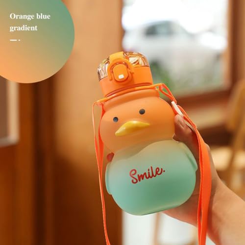 zhongguoqiaomao - زجاجة مياه على شكل بطة مع ماصة 800 مل مع حزام قابل للتعديل ومانعة للتسرب بتصميم بطة صغيرة لطيفة وحزام قابل للتعديل والازالة للبنات والمدرسة والسفر والاماكن الخارجية من زونغجوكياوماو (برتقالي)
