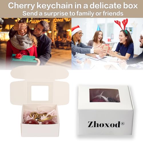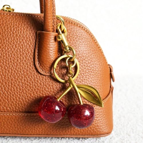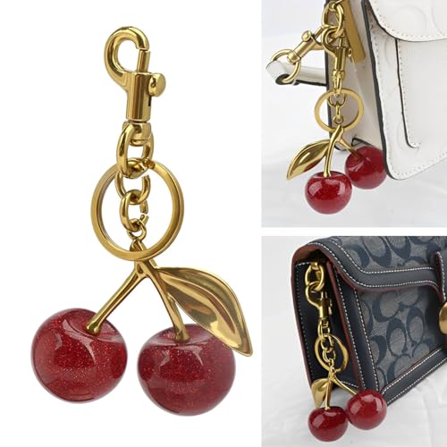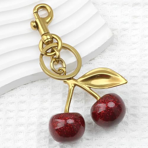 Zhoxod - قلادة سلسلة مفاتيح على شكل كرز من زوكسود، زينة معلقة على شكل كرز، مصنوعة من خليط الراتنج، قلادة لطيفة مع حلية فريدة من نوعها (احمر تشيري مذهب)