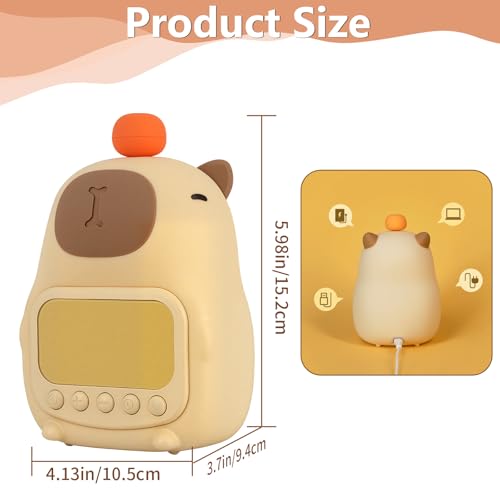 - 【Adorable and Practical Gift 】- Designed with a cute and captivating capybara shape, this cute alarm clock is not only a functional tool but also a delightful gift that children will love. It serves as a charming decoration to brighten up bedrooms, children’s rooms, living rooms, or office desks, adding a touch of whimsy to any space while being a practical addition to daily routines