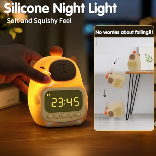 Zhwidnerso - Capybara Kids Alarm Clock with Night Light, Silicone Alarm Clock for kids, Rechargeable Cute Animal Tabletop Lamp, 2 Alarms, Snooze, 12/24H Display, Bedside Clock for Girls Boys, Children