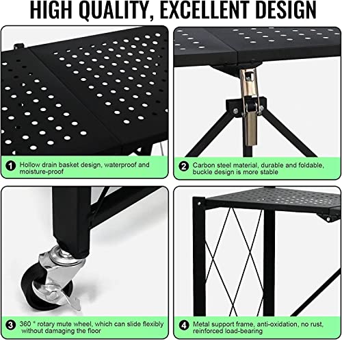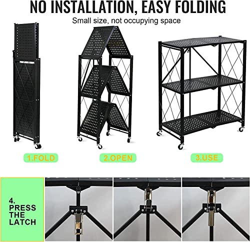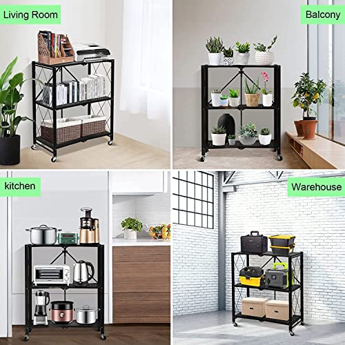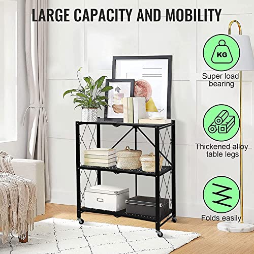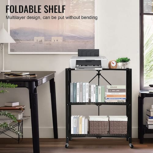 ZICCO - ZICCO Home Brand Foldable Storage Shelving Unit 3 Tier, Storage Shelves Kitchen Cabinet Storage Rack with Caster Wheels, Multi-Shelf Shelves for Living Room Bedroom Kitchen, Black 70x34x87cm