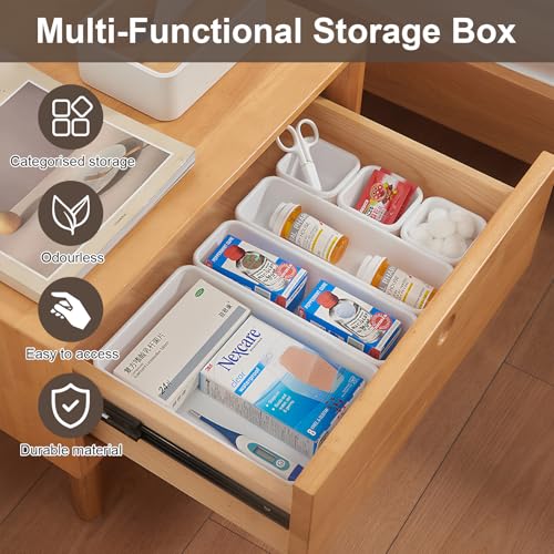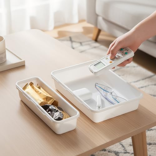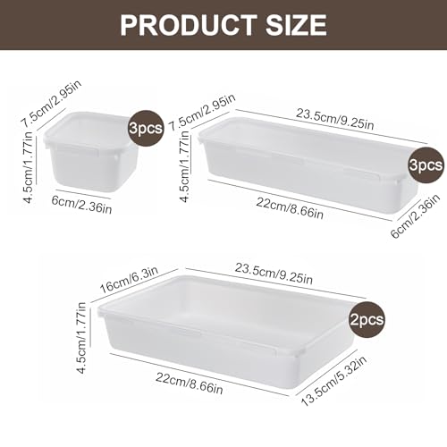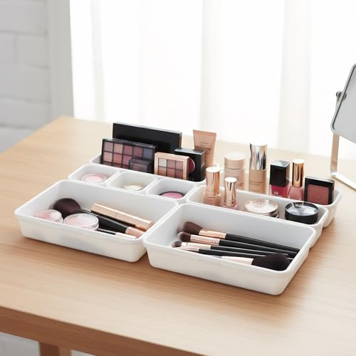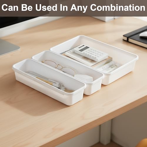Zimoer - Set of 8 Drawer Organizers, Plastic Storage Trays in 3 Sizes, Stackable Drawer Dividers for Makeup, Kitchen, Bathroom, Office and Desk (White)
