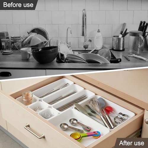 - ORGANIZED, CLEAN & EFFICIENT LIVING - Say goodbye to mess! These stackable drawer dividers help keep your essentials in order and within reach. Enjoy a cleaner, more organized space that saves time and reduces stress in your daily routine.