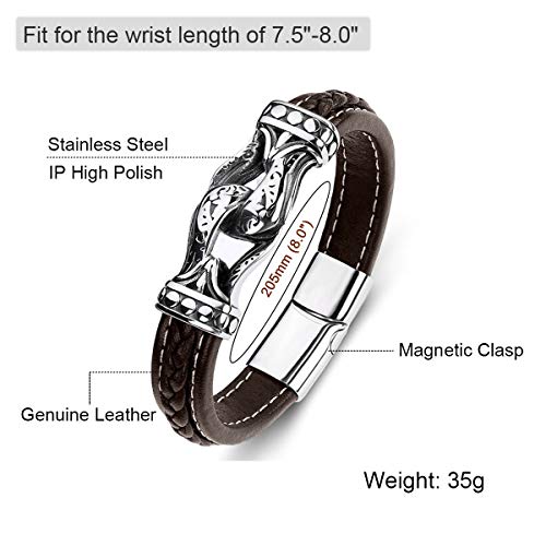 ZiMOJiE - Braided Genuine Leather Bracelet for Mens Bangle Bracelets Fashion Stainless Steel Magnetic Clasp, stainless-steel,