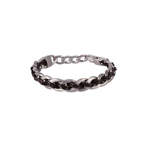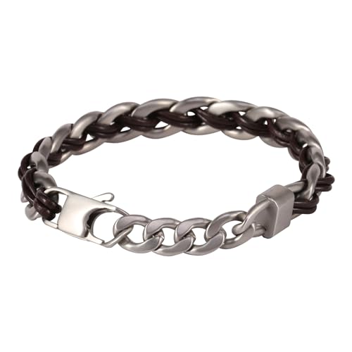 ZINK - ZINK Men's Silver & Brown Stainless Steel & Leather Bracelet | ZJBC008SLBW-L