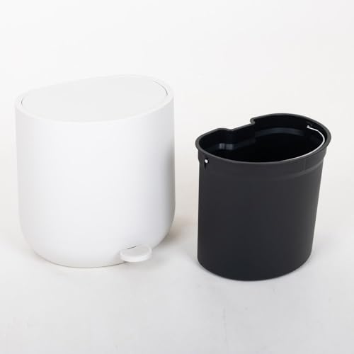 Zinnia - سلة مهملات بدواسة نصف دائرية بغطاء مصنوعة من البلاستيك من زينيا، سعة 5 لتر، أبيض