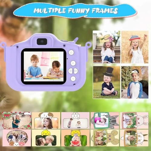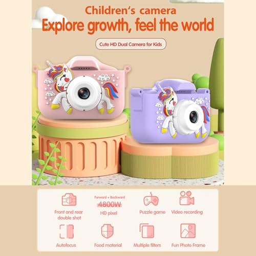 - LEARER MOMENT RECORDED & MULTI-SCENE SELECTIONS: Equipped with auto Focus, 8.0 Mega pixels and 1080P Video. Greatly improved the definition of photos . Catch the wonderful joy moment for boys or girls. With Big head sticker shooting, children can take photos with frames, leave some hilarious photos with family or friends