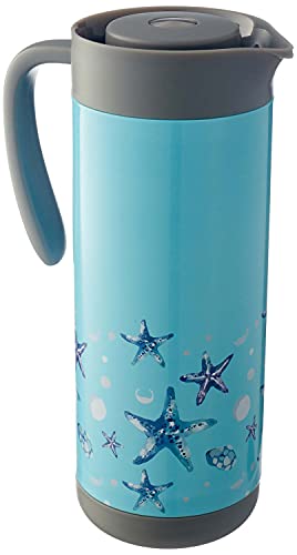 Zinnia - ترمس فولاذ مقاوم للصدأ بطباعة نجوم، 1 لتر، أزرق ورمادي