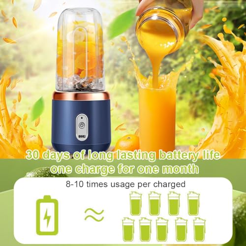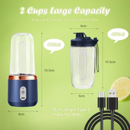 Zinueen - Portable Blender Blue Smoothie Blender to Go with 6 Blades, 2 x 400ml Mini Tumblers with Lid, USB Rechargeable for Juice, Smoothies and Baby Food
