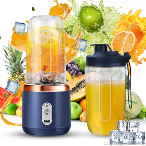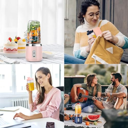 - MULTIFUNCTIONAL The juice extractor with 2pcs 400ml smoothie cups, the blender provides enough space for fruits, vegetables and ice cubes, perfect for preparing nutritious smoothies, milkshakes, mixed juices, mixed fruits, vegetable juices, baby food and other foods, its lightweight and portable design is ideal for kitchen, office, travel, gym, camping and outdoor activities.