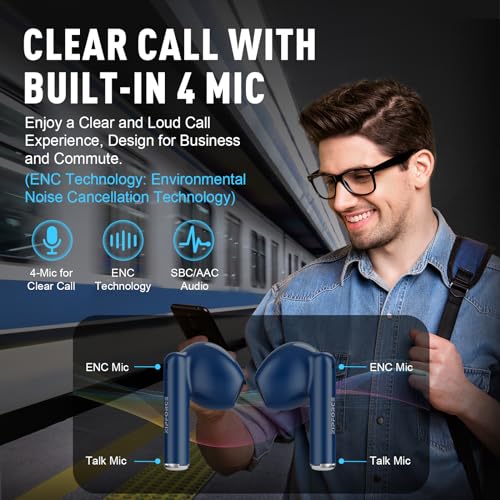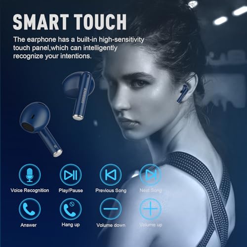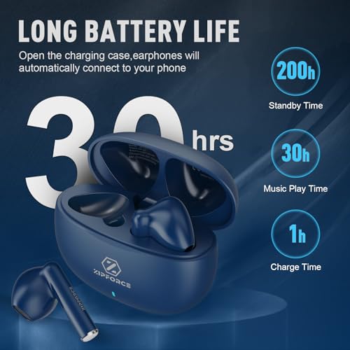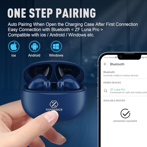 ZIPFORCE - سماعات أذن لاسلكية من زيبفورس بلوتوث 5.3 داخل الأذن بـ 4 ميكروفونات مكالمات واضحة تحكم باللمس لـ40 مرة تشغيل مقاومة للماء بتصنيف IPX6 خفيفة الوزن أزرق