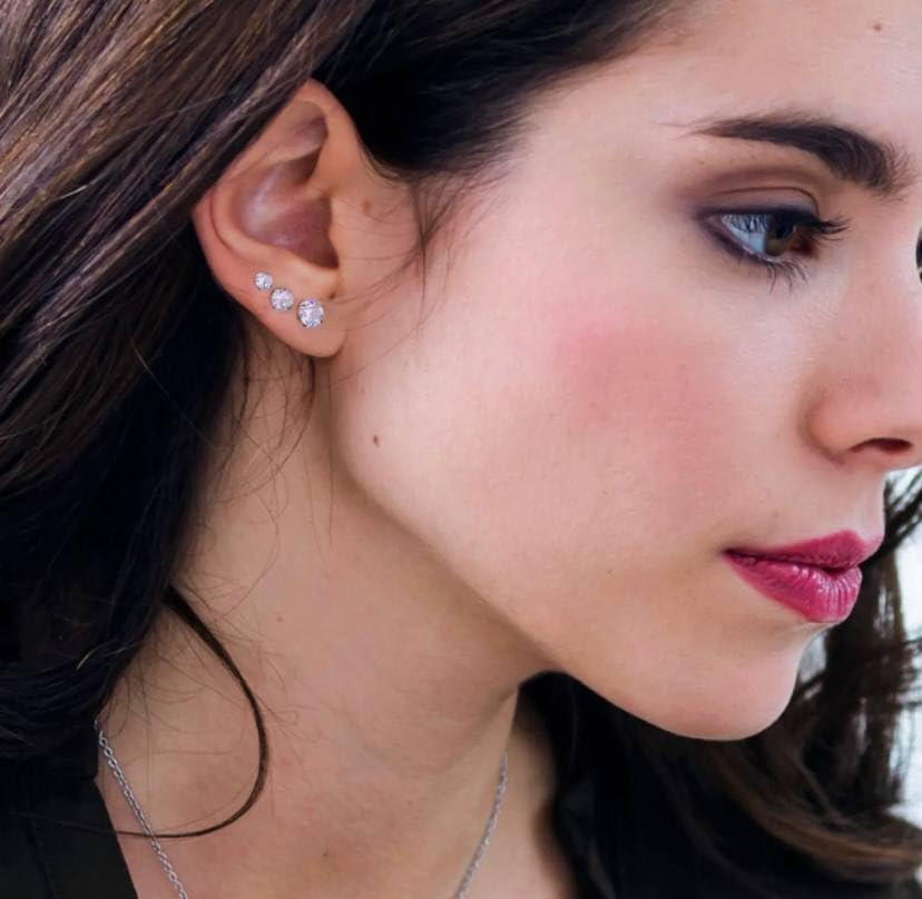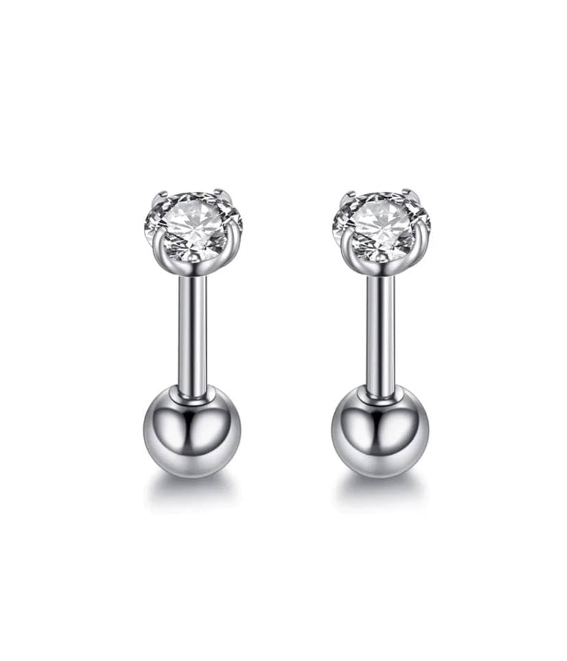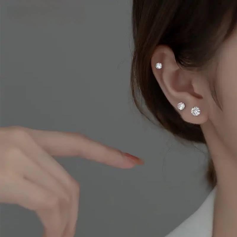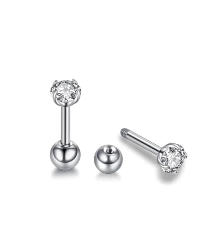 Generic - Zircon Mini silver Stud Earrings for Women and girls Fashion Body Piercing 1 pair Studs Round Post Back Ball Screw Women Girl Helix Cartilage Ear Lobe Small Cute Piercing Jewelry