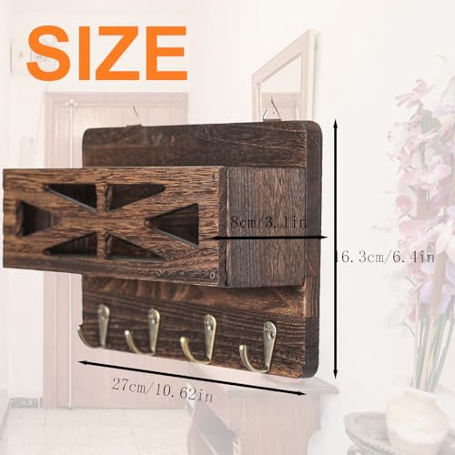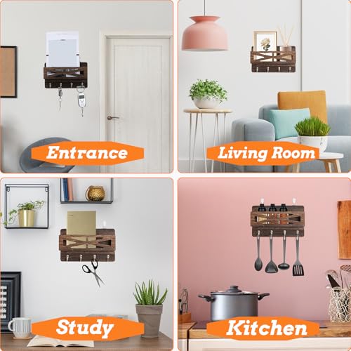 - ZONED ORGANIZATION: The wall organizer is divided into letter storage area and hooks area, which can store different items.You can also place decorations. Four hooks meet your storage needs