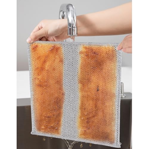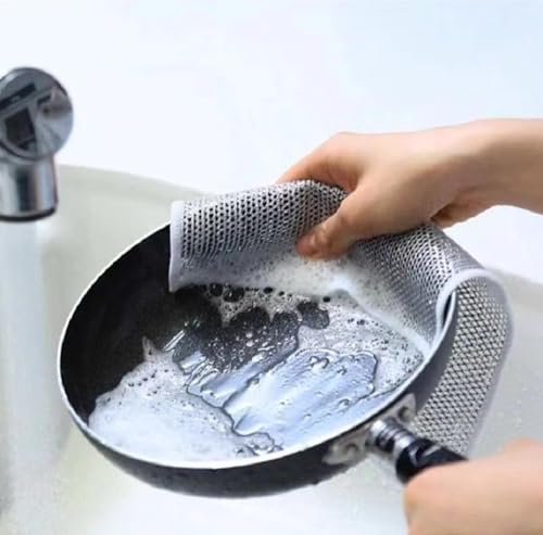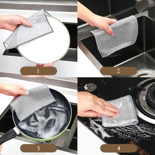 - Durable Construction: Featuring a unique fish-scale grid fabric surface design, these wire dishcloths offer optimal scrubbing power for sparkling clean dishes. they cover dishes, pots, pans, countertops and cooktops without scratching.