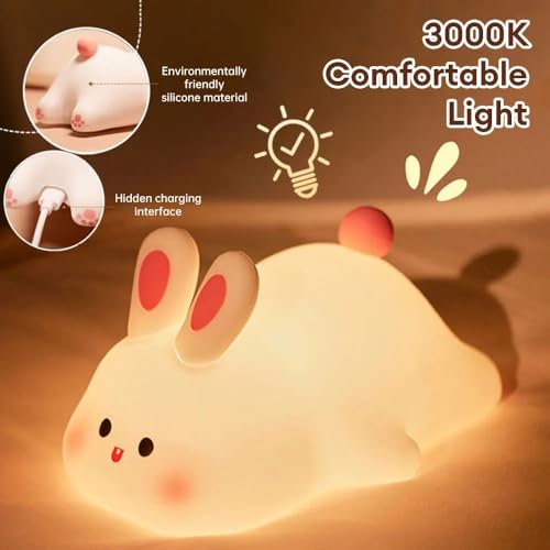 Ziyan - مصباح مصنوع من السيليكون الناعم الملمس، مصباح ليلي لطيف على شكل أرنب، مزود بمستشعر لمس، وجه أرنب كبير، ضوء ليلي قابل لإعادة الشحن عبر منفذ USB، مناسب لغرف الأطفال من زيان