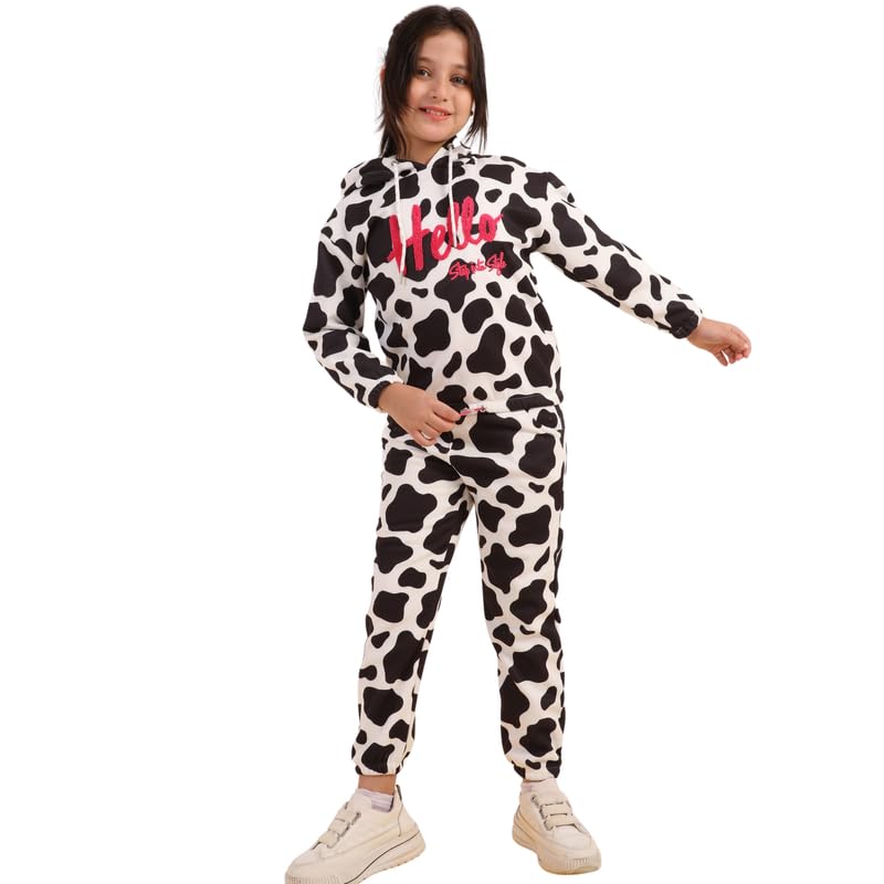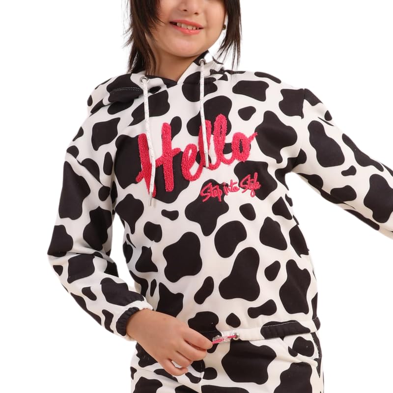 Zizo - سويت شيرت بغطاء للرأس وأكمام طويلة وبنطلون بطباعة رقمية من قطن ميلتون للبنات من زيزو