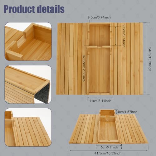 ZJRDYYK - Sofa Armrest Tray Table for Couch - Bamboo Couch Arm Tray Table with Detachable Couch Cup Holder Tray - Anti-Slip Foldable Sofa Table Tray for Snacks, Phone, Control, Cup