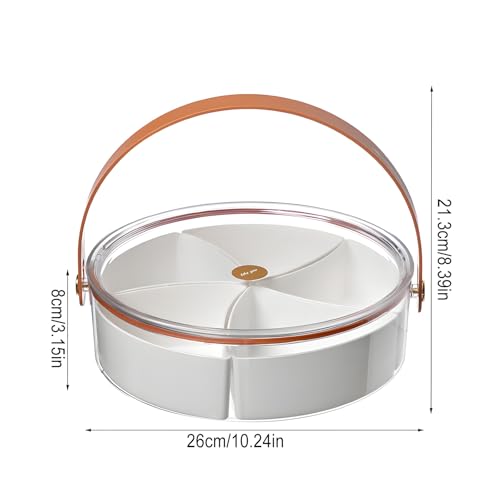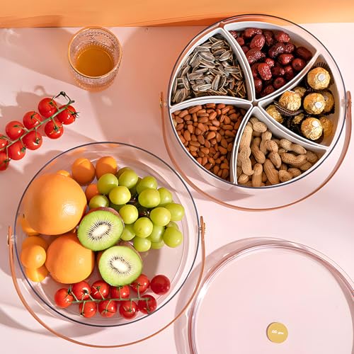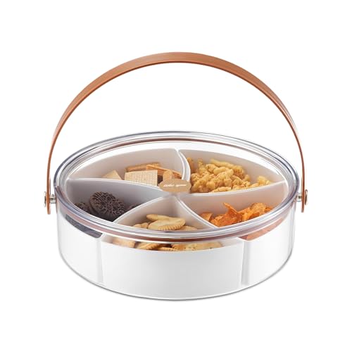 Zliger - Divided Serving Tray, Snack Box, Portable Snack Plate with 5 Compartments, with Airtight Lid and Handle, for Fruit, Nuts and Snacks, Suitable for Parties, Travel
