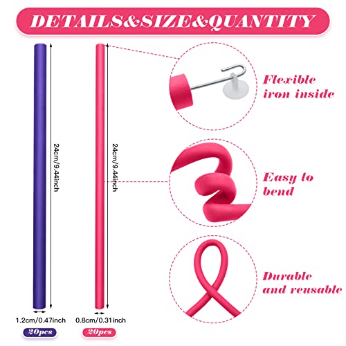 - ❤【Package Includes】You will receive 20 pieces of purple 1.2cm foam heatless curlers+20 pieces of pink 0.8cm foam heatless curlers, and 2 pcs pintail comb. Perfect for your curly hair needs of all lengths and thicknesses, and enough to share with your sisters.