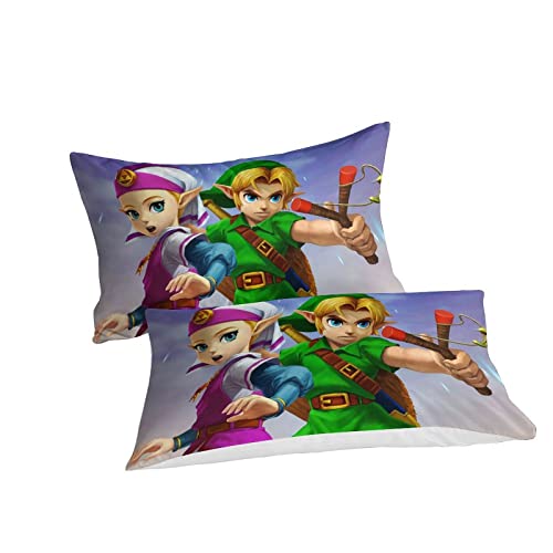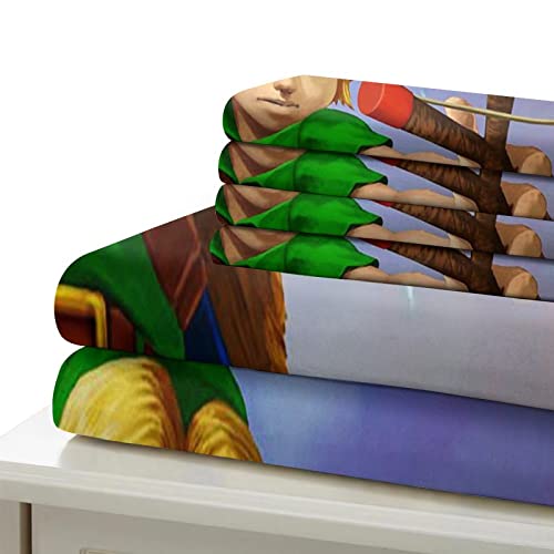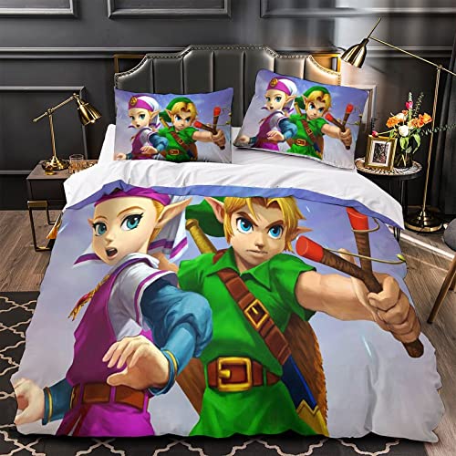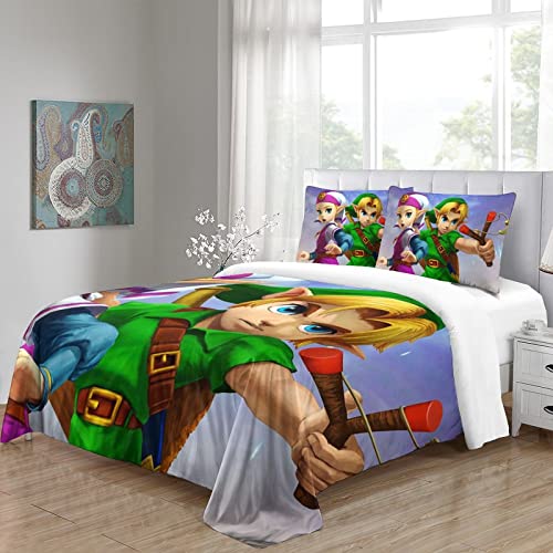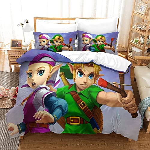 ZOENAE - ZOENAE Zelda Duvet Cover Set Kids Cartoon Pattern Bedding Set for Boys Girls Adults 3 Pieces Quilt Cover Zipper Closure with Pillowcase Single(135x200cm)