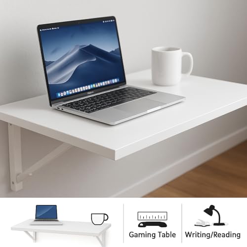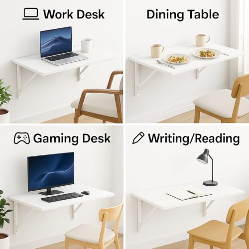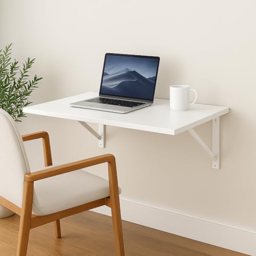 Generic - ZohnyHome Foldable Wall-Mounted Desk – Space-Saving Table for Study, Laptop, Dining & Work | Available in White & Natural Wood, Sizes 40×60 cm & 50×80 cm (White, 50×80 cm)