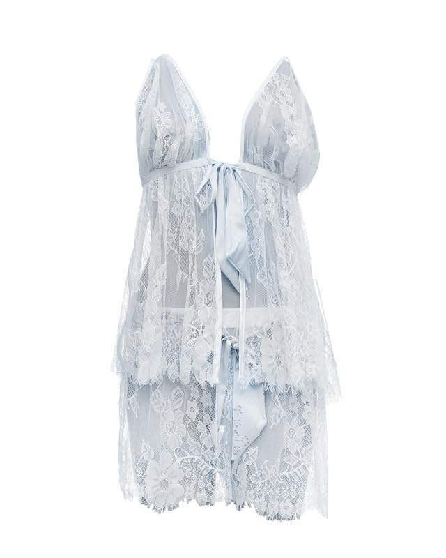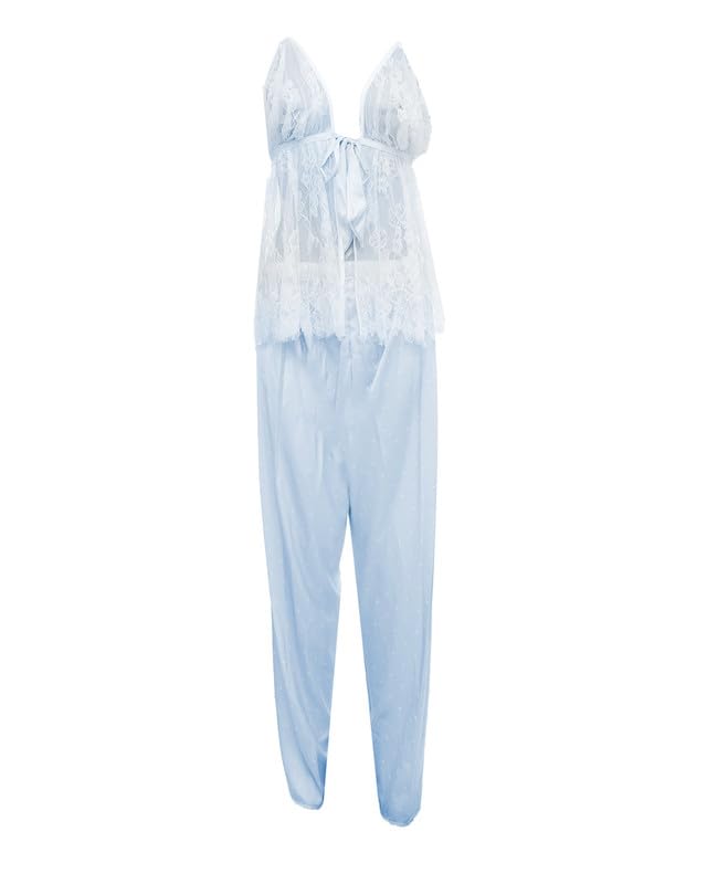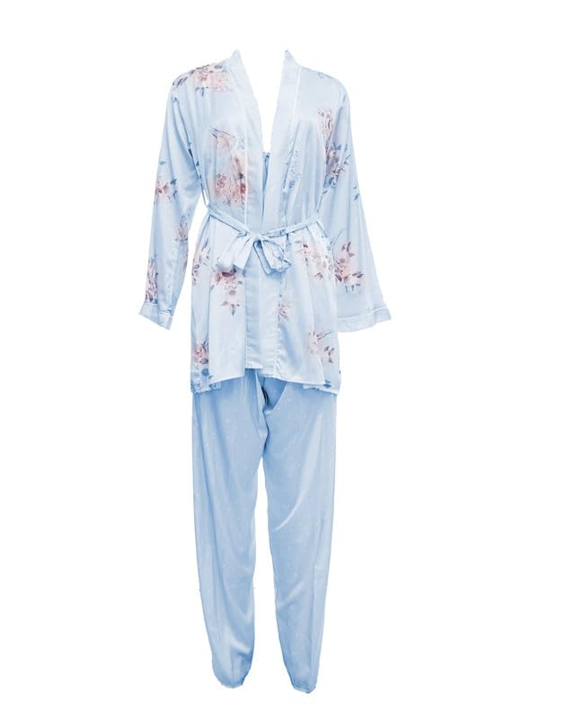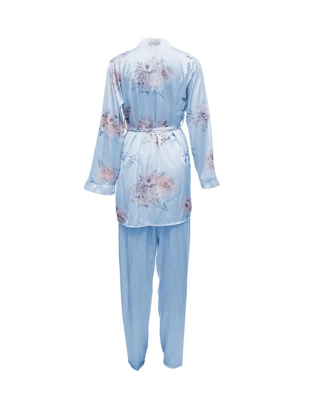 ZONA - ZONA Women’s 4-Piece Satin Lingerie Set – Robe, Nightdress, Skirt & Pants For Women One Size - Light Blue 9421-LB-129