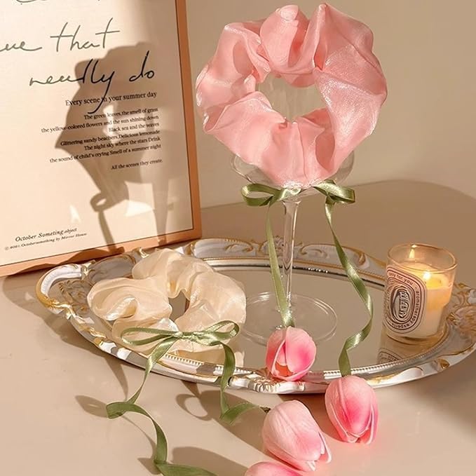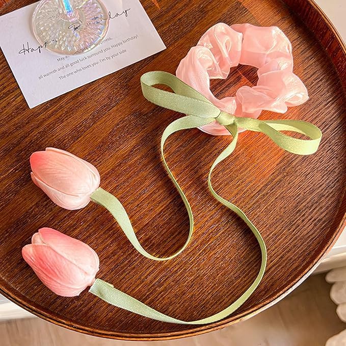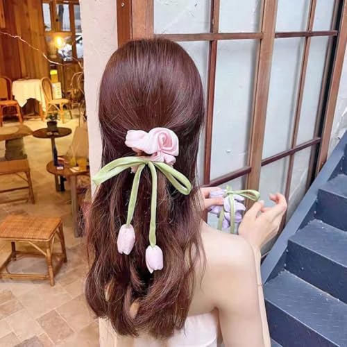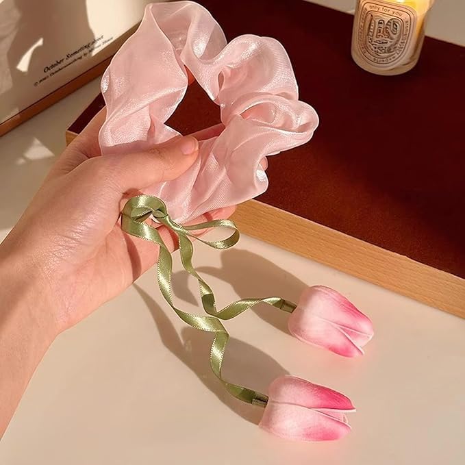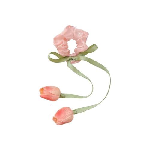 ZSOONNSHOP - ربطة شعر جذابة مصنوعة يدويًا - حبل ذيل حصان مرن بتصميم زهرة توليب جميلة لتصفيفة شعر نسائية عصرية . من زوون شوب (بينك)