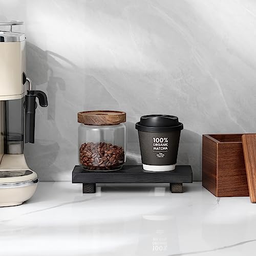 zoocatia - حامل منظم صغير للحمام بقاعدة خشبية، صينية صابون لديكور المنزل الريفي للمطبخ والحوض وزجاجة اللوشن والنباتات ومستحضرات التجميل، أسود، من زوكاتيا، مستطيلي