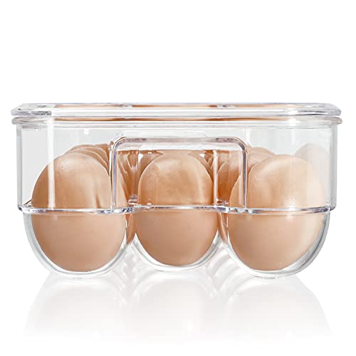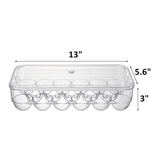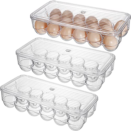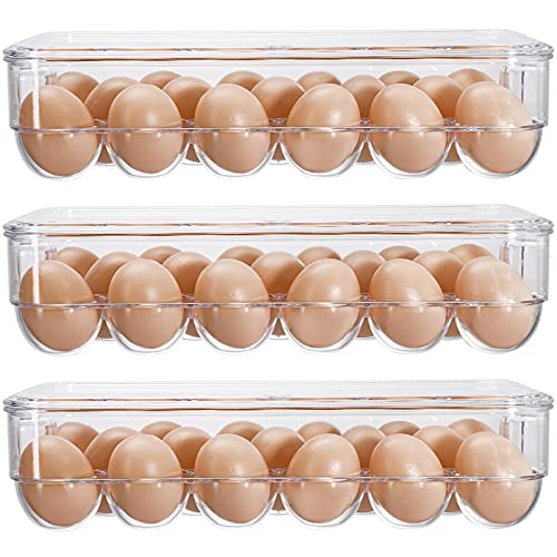 - Package Content: The package includes 3 covered egg holders. Approx measurements: 13" L x 5.6" W x 3" H. Each bin holds up to 17 eggs, it is suitable freezer, fridge and cupboard.