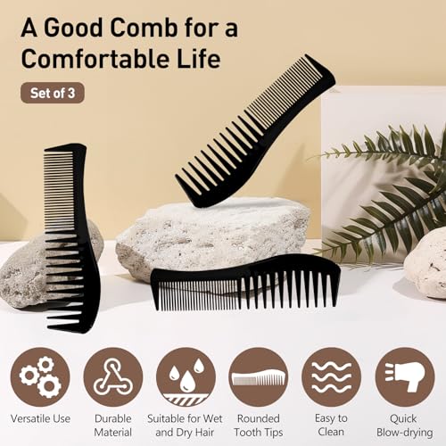 - This set includes three professional-grade hair combs, each designed with two sides: one with wide teeth and the other with fine teeth. These versatile combs are perfect for all hair types, making them a must-have tool for every hair care routine.