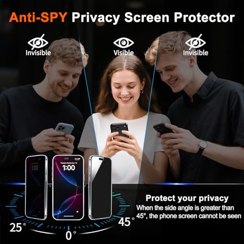 - [Anti-Spy Screen] Privacy case for iPhone 16 pro protect privacy and screen, when facing screen at 90°, screen content is clearly visible, when facing above 45°, screen content not visible, It can effectively protect your privacy when you open your phone in a crowd.