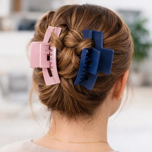 ZOZY - مشابك شعر متوسط الحجم للنساء والبنات من زوزي، مخالب شعر مربعة غير لامعة وغير قابلة للانزلاق، مشابك متينة للشعر الخفيف، اكسسوارات تصفيف الشعر اليومية، عبوة من قطعتين