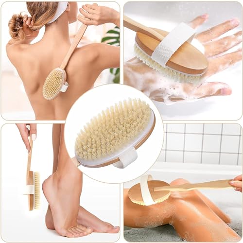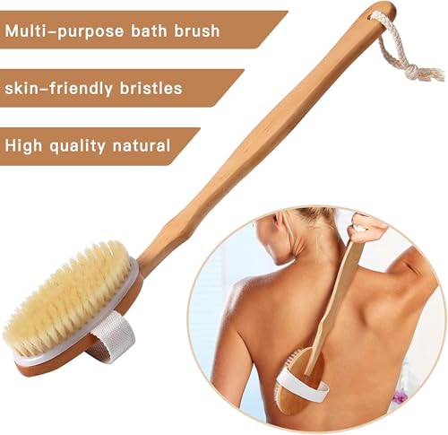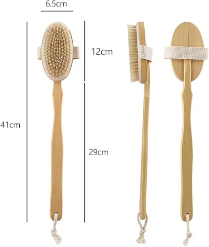 - 🌟 Long Wooden Handle Design – Extended handle helps reach the back, shoulders, and legs easily, providing comfortable full-body cleansing without bending or straining