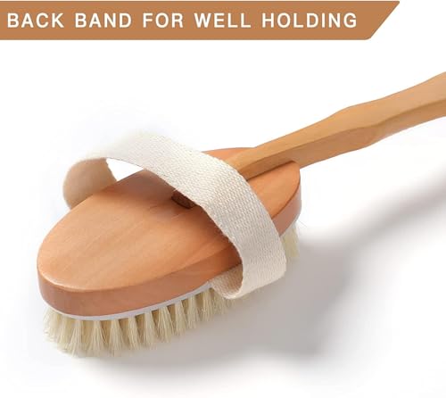 ZOZY - ZOZY Long Wooden Handle Bath and Body Brush with Bristles – Back Scrubber for Deep Cleansing and Smooth Skin Care, Suitable for Wet or Dry Use