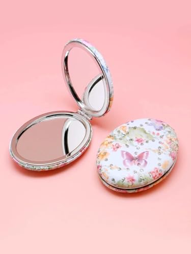 ZOZY - ZOZY Portable Folding Pocket Mirror – Multi-Color & Multi-Shape Compact Makeup Mirror for Women and Girls, Travel-Friendly Handheld Mirror (1 Pc)